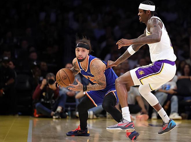 本场比赛中,湖人的替补锋线球员贾里德-范德比尔特(Jarred Vanderbilt)的表现还是值得肯定的。范德比尔特全场出场10分28秒,投篮2中1,三分线外2中1,得到了3分2篮板1助攻1盖帽的数据,还有2次犯规,正负值为-4。范德比尔特在防守端的表现依然是相当不错的,他偶尔还是能够顶住内线的,他也展现出了自己比较全面的防守能力,证明了自己能够防守对手多个位置的球员。不仅如此,范德比尔特在进攻端的表现也是超出大家预期的,他也是命中了一记外线投篮,这样的表现也已经超出大家预期的。至少在本场比赛中,范德比尔特也算是很好地完成了自己的任务,在有限的出场时间内刷出了自己的存在感。